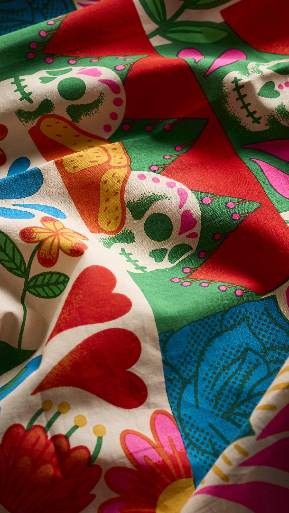 Designed by California based graphic designer and illustrator, Blanca Molina. Born in Mexico, Blanca is inspired by her Mexican heritage and aims to inspire happiness, nostalgia and creativity with her work. She’s said about this design, “Día de Muertos is a celebration where we honor and remember our loved ones in a positive way. With my design, I wanted to capture that same spirit — using vibrant colors and movement to reflect joy and life, while still honoring the traditional imagery of Día de Muertos.”