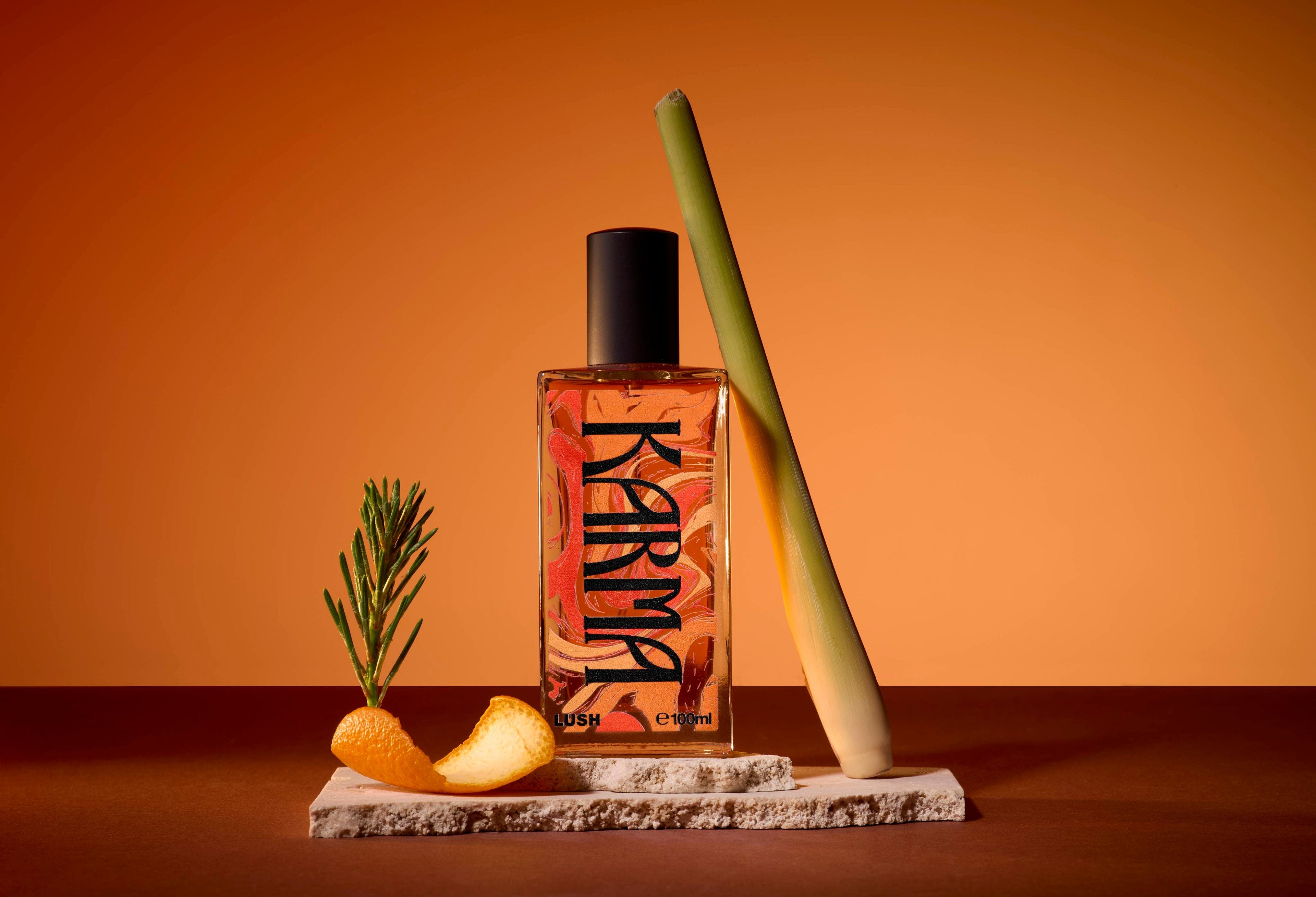 To celebrate the 30th anniversary of Karma, Lush Designer Tamsin Thomas has created this limited-edition design that was inspired by Karma bottles of the past and patterns of the ‘70s. The flowing lines mimic the way the notes of this fragrance blend together.