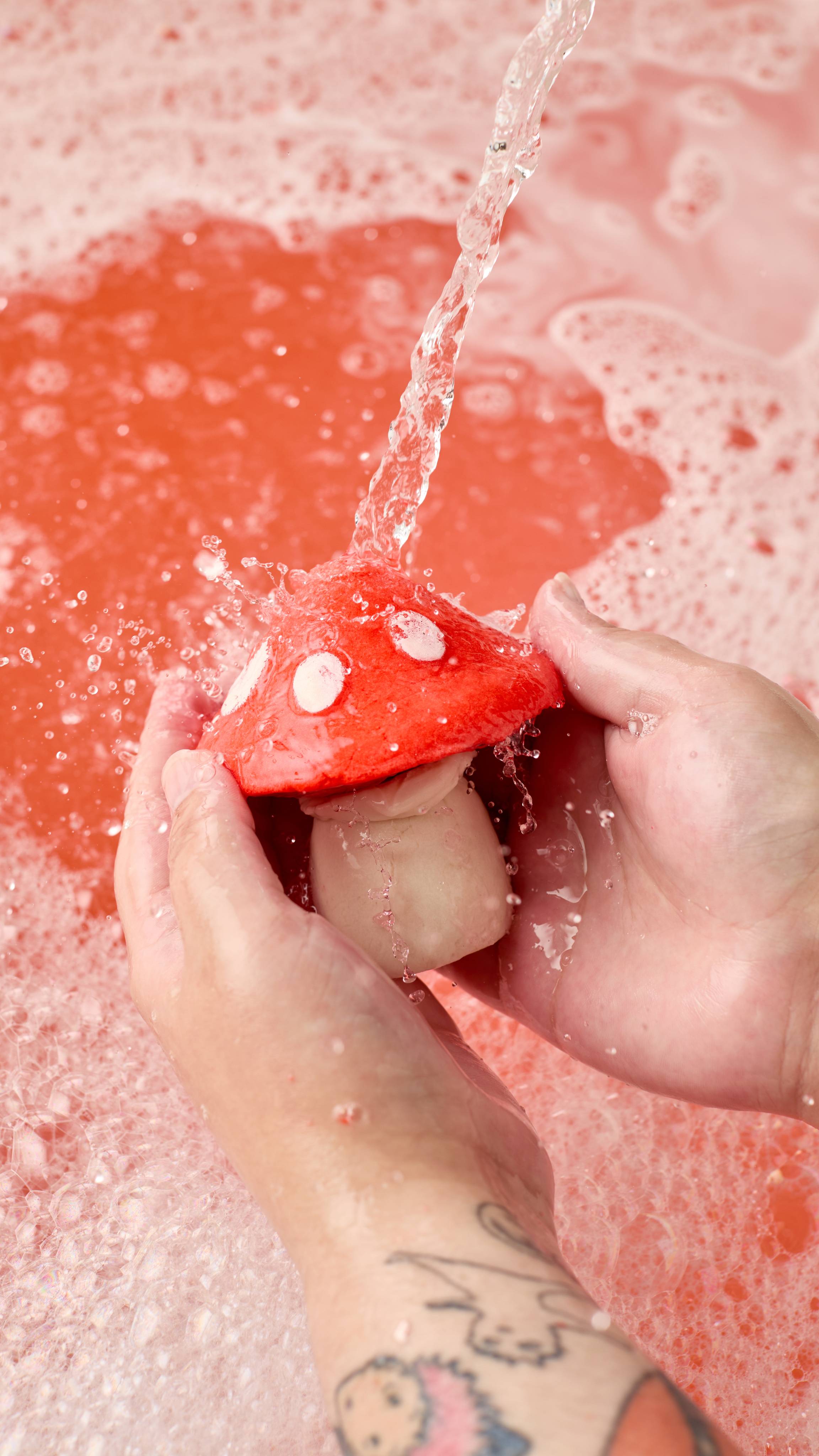 Foraged just for you, a magical mushroom of twofold delights. With a cap of cocoa, vanilla and bergamot, poised upon a strawberry-scented stalk, swirl these fluttering scents together to make your own magic soak — melting your cares away in pools of cocoa, shea and illipe butters.