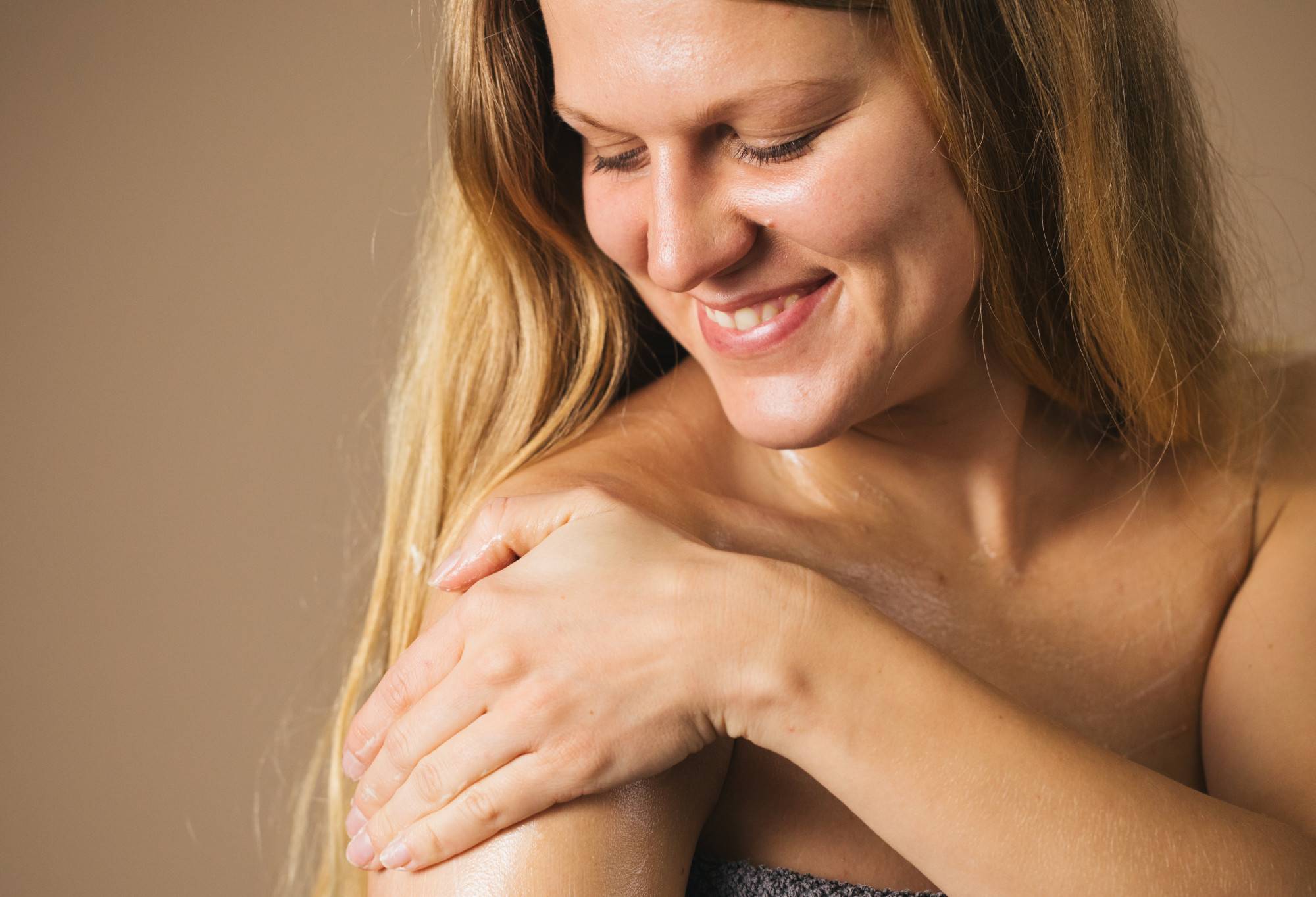 Smooth all over your body, taking extra care with your dry areas.